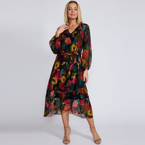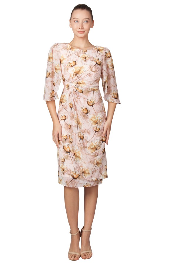 Style 225357 – Floral Chiffon Midi Dress (Plus Size Friendly) $189