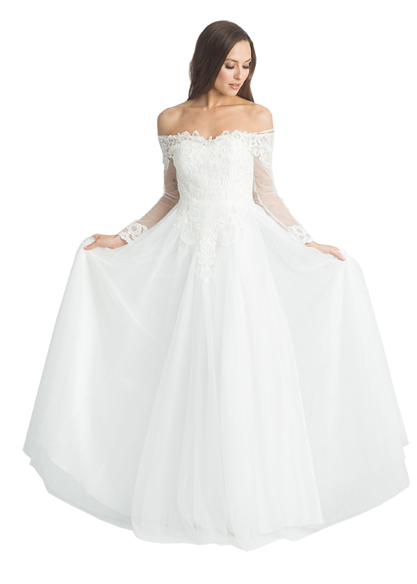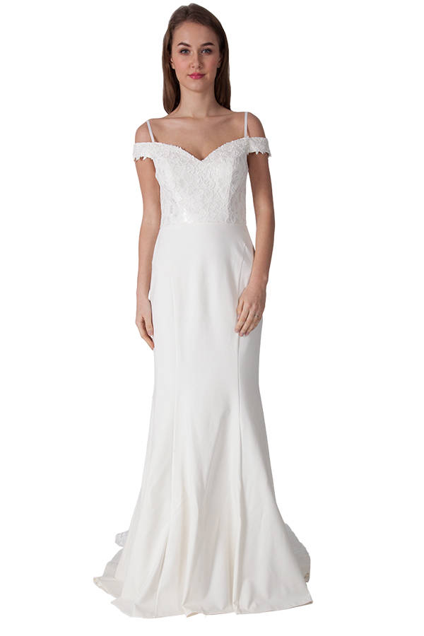 Tania Olsen PO2311 Willa Wedding Dress – Elegant Off-Shoulder Satin Bridal Gown $520