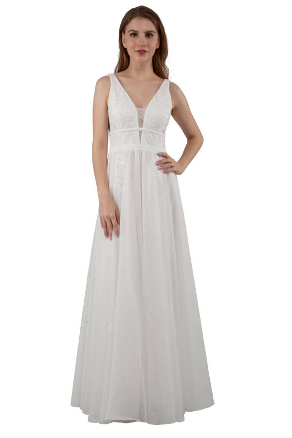 Jadore J3053 long dress - White dress size 8 LAST ONE! WAS $425 NOW $250