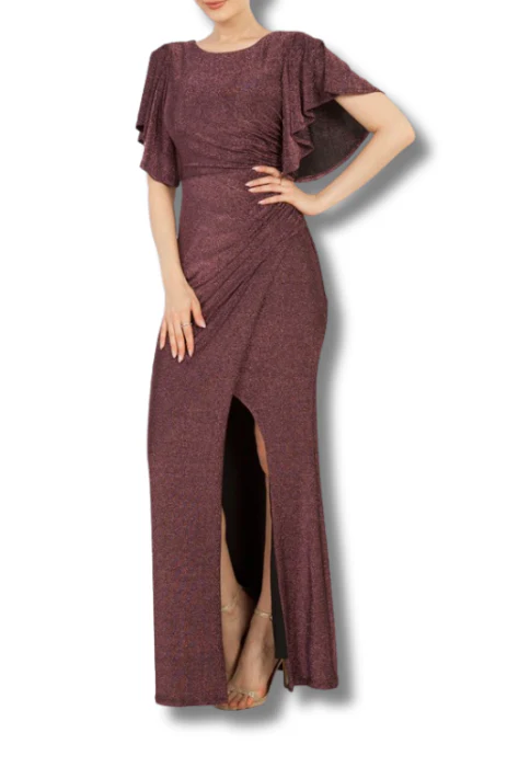 Style 222463 – Shimmer Flutter Sleeve Formal Dress $275