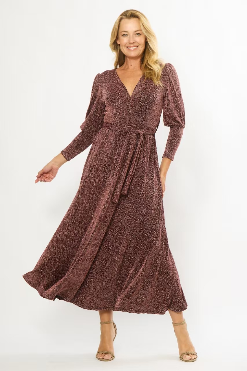 Style LSD26-276 Dusty Rose Shimmer Midi Dress $199