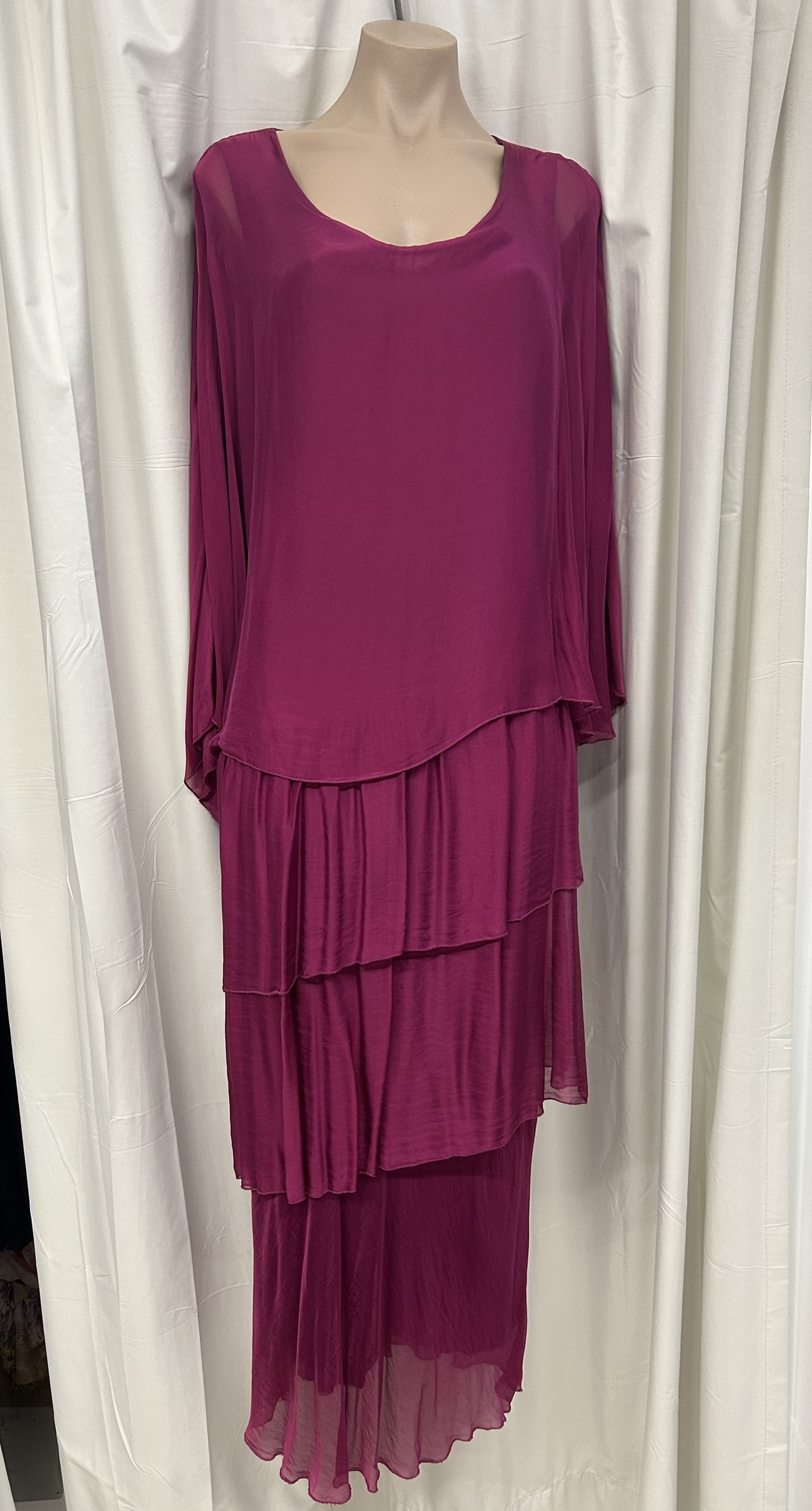 LSD23-201 Italian Silk Multi-Layer Dress – Orchidea | Effortless Occasion Elegance $195 - LAST ONE size XL