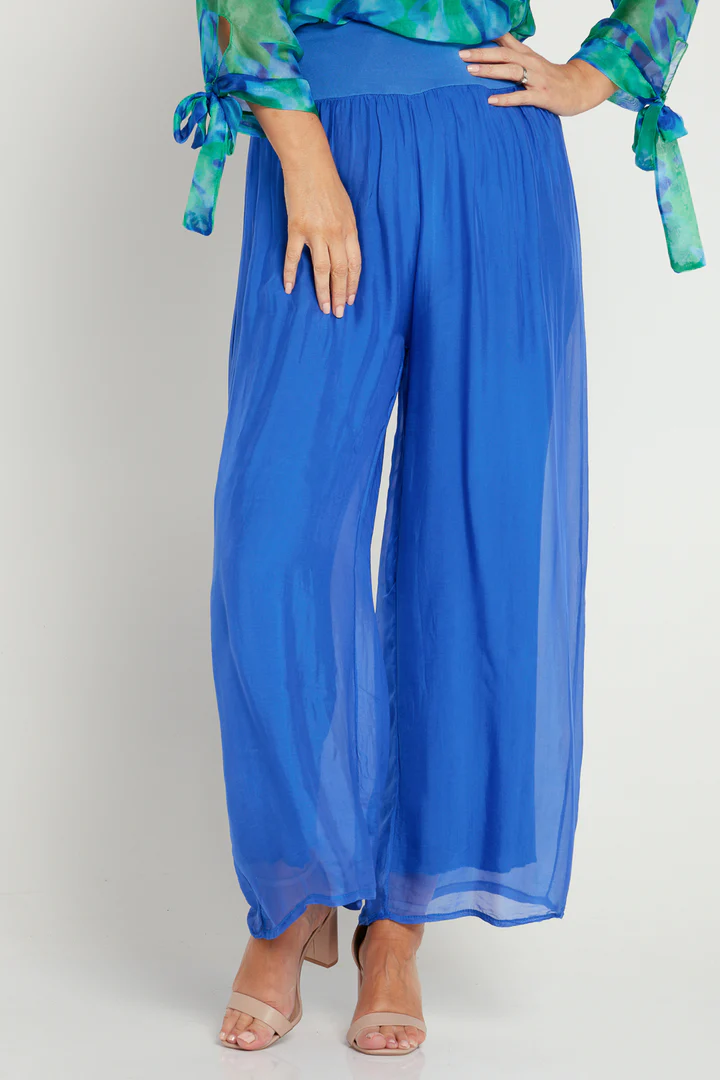 LST21-250A Sequin trim silk PANTS & TOP royal blue with sleeves $240.00