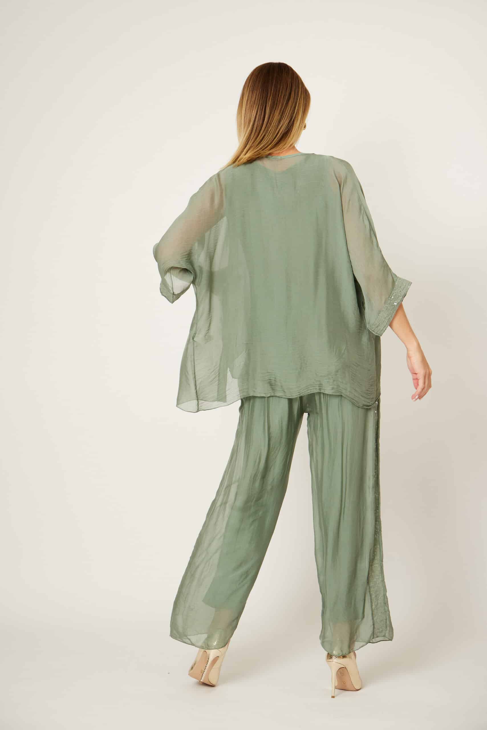 LSP24-474 LA STRADA SILK PANTS WITH SEQUIN TRIM KHAKI $139.00
