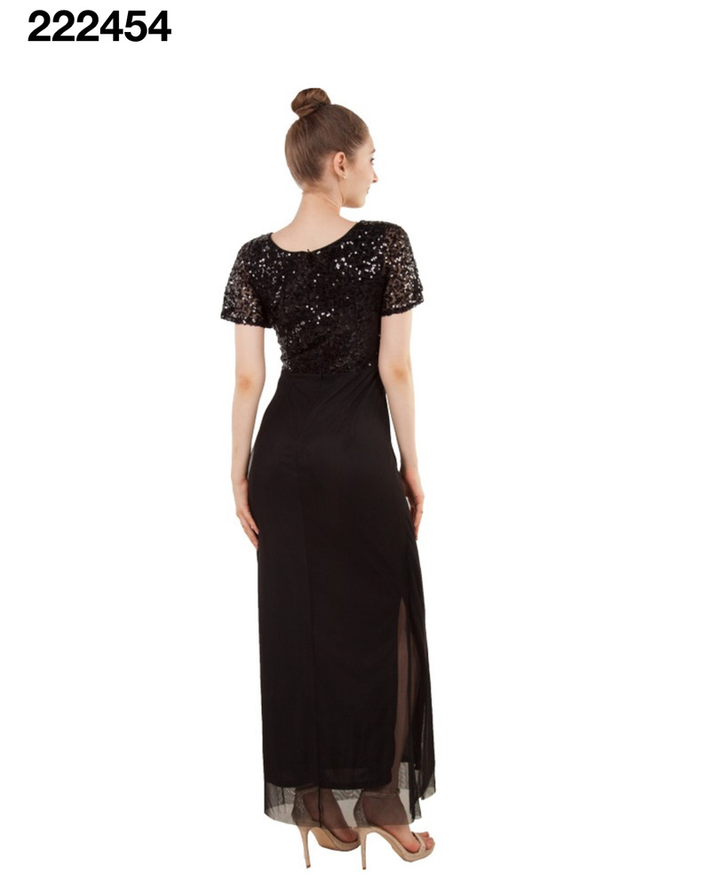 222454 long gown with sequin bodice $299