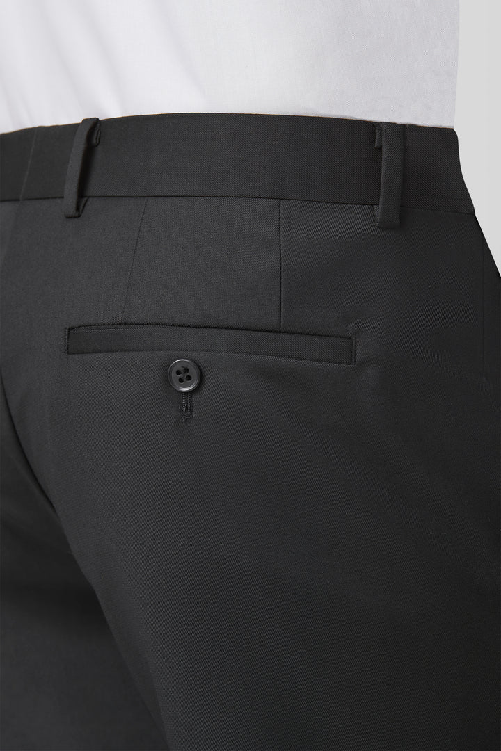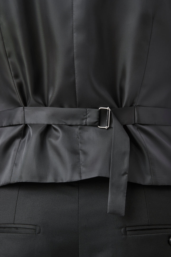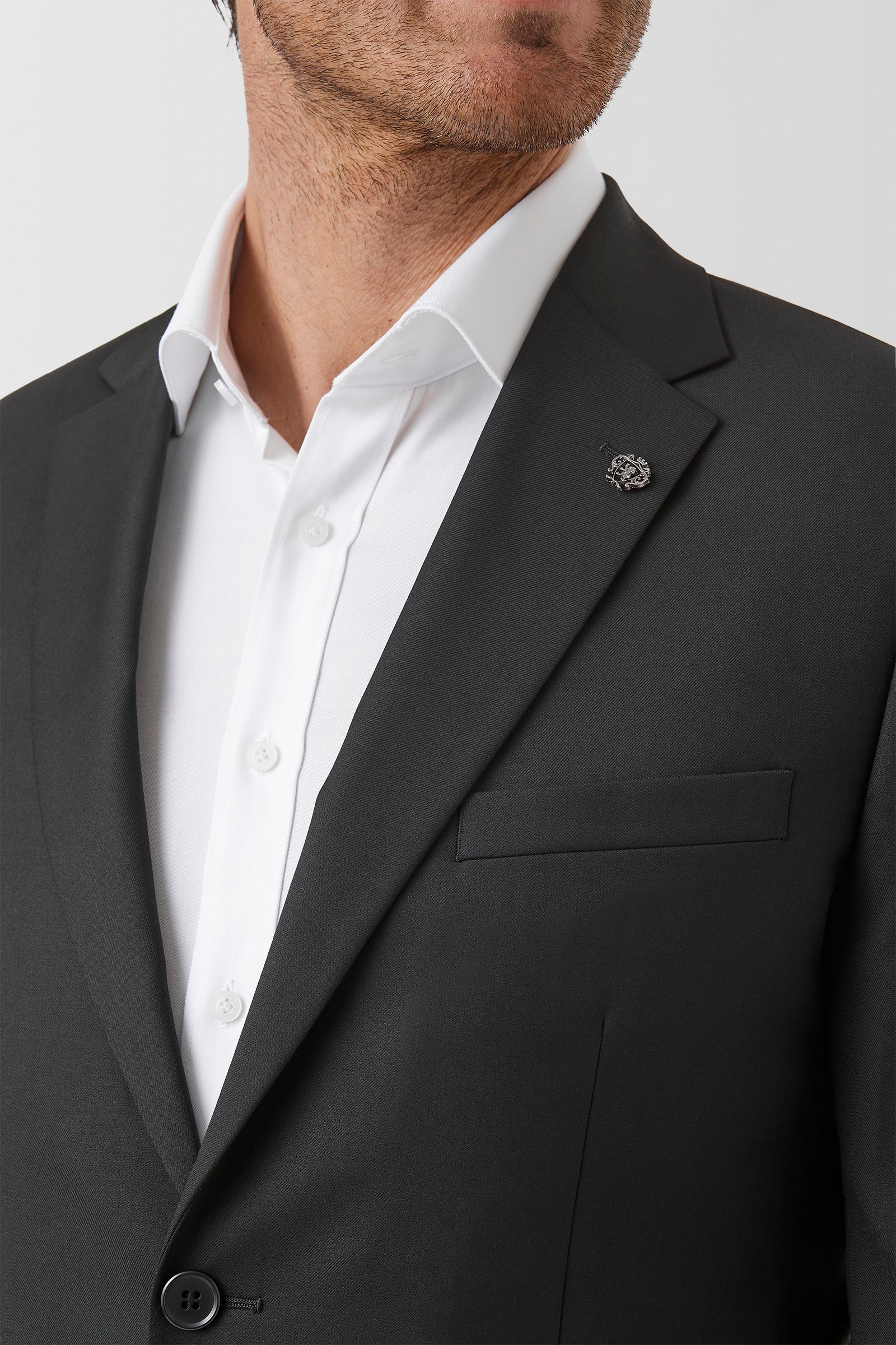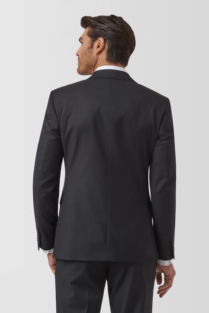 Featuring a single-breasted two-button front, classic notch lapel, and straight flap pockets, this jacket delivers timeless sophistication with a contemporary edge. The sleek black finish makes it an essential wardrobe staple for business, weddings, race days and formal functions.