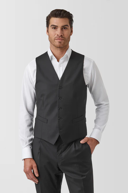 The Taurus Vest in a high-performance stretch fabric adds comfort and elevates your special occasion and your office style. $150