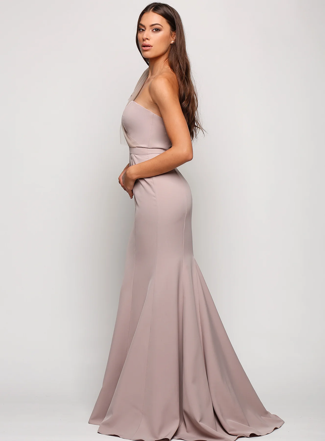 Samantha Rose Marissa Dress, one shoulder formal gown, bridesmaid dresses Australia, fitted evening dress, school formal gown, crepe one shoulder dress, wedding guest outfit, Guyz & Dollz formalwear