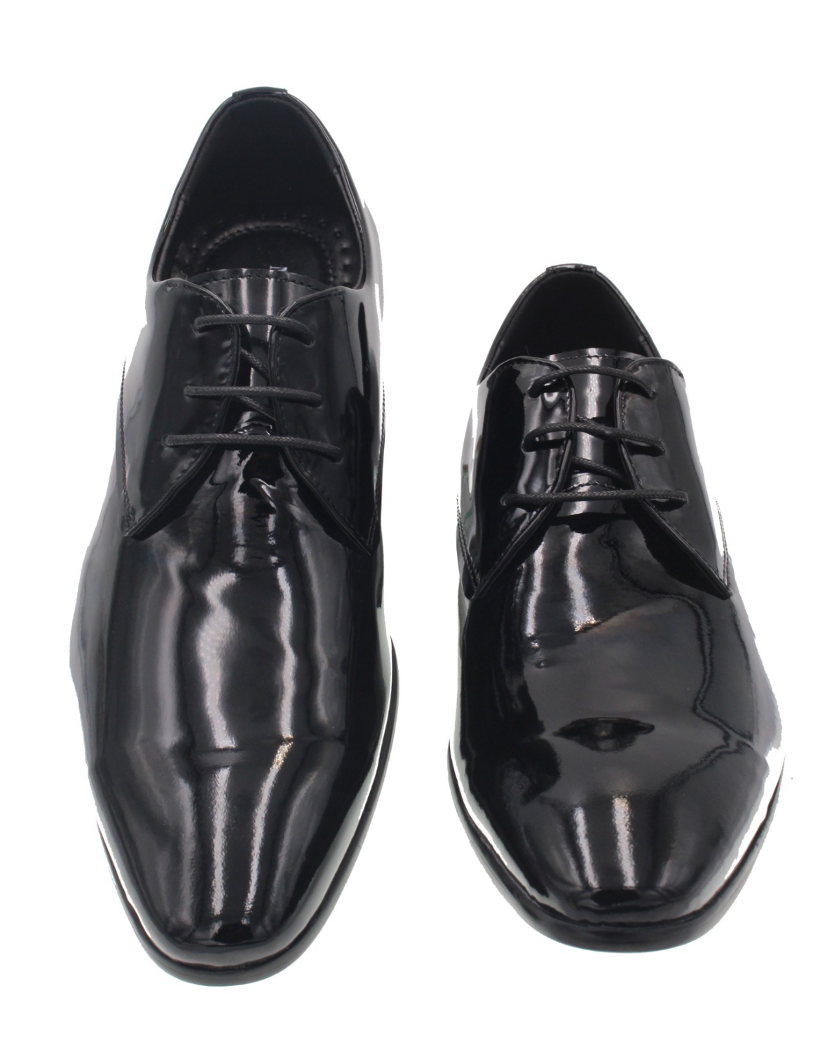 patent leather men’s formal shoes, black tuxedo shoes, school formal shoes for hire, shiny black dress shoes, Martino Carolus tuxedo shoes, men’s black-tie shoes, gala footwear, shoes for weddings and debutante balls.