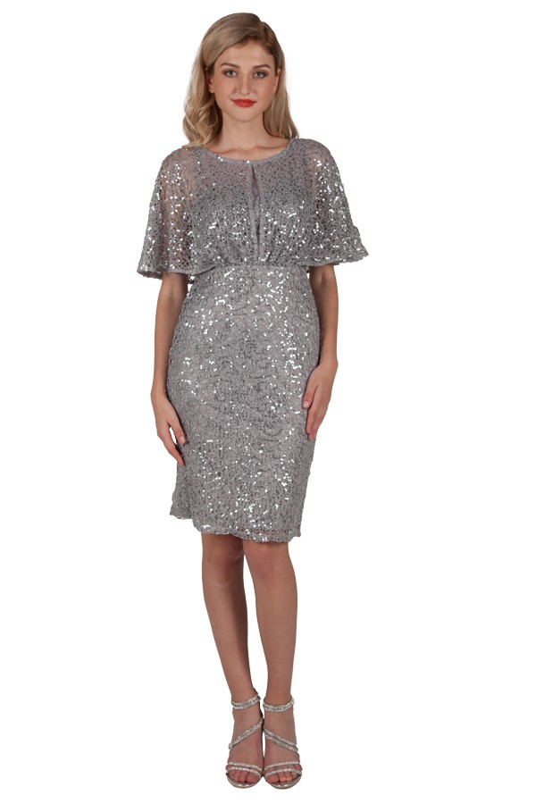 Couture-inspired elegance meets effortless glamour with the Miss Anne Sequin Net Dress. This cocktail-length masterpiece is crafted from lustrous sequins and delicate net, with wing sleeves for a touch of sophistication. For evenings of timeless glamour, look no further.