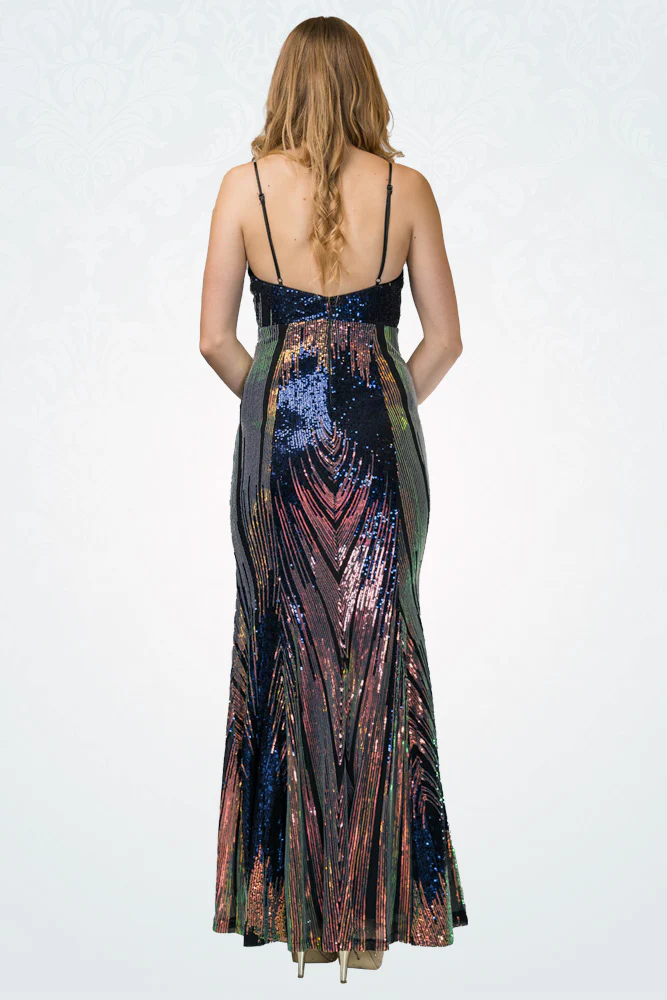 This gorgeous Art Deco inspired long sequined IVY gown from Miss Anne is figure hugging and available in sizes 6-14. It would be perfect for a School Formal, Ball, bridesmaid dress, Formal dinner.