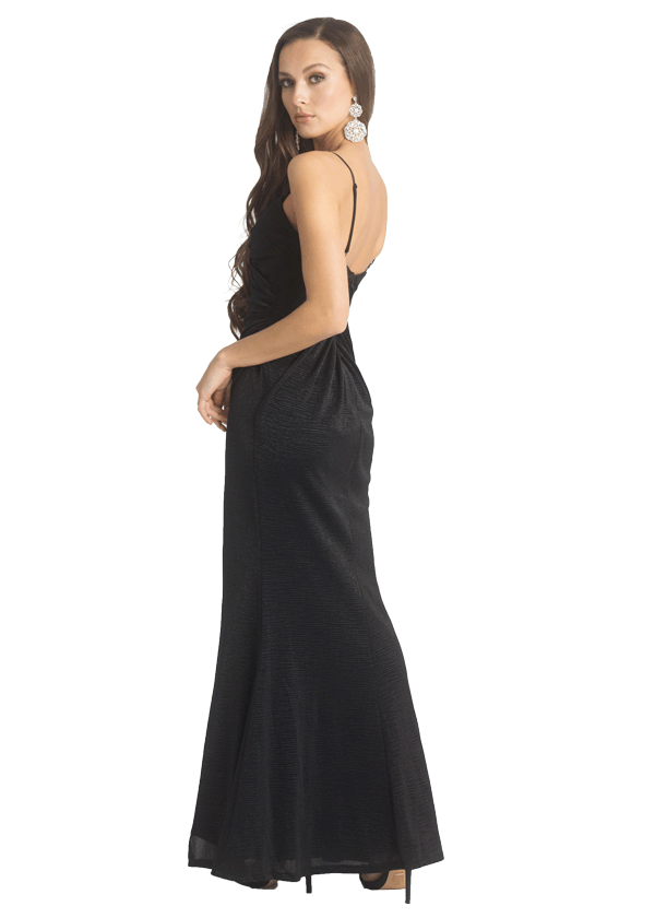 This beautifully fitted mermaid style gown with a sweetheart neckline, has gathered detailing on the front and at the centre back creating a more sexy voluptuous silhouette. This evening gown has a split on the left side. Made in a luxurious lurex metallic fabric with a stretch jersey lining this gown is a show stopping.
