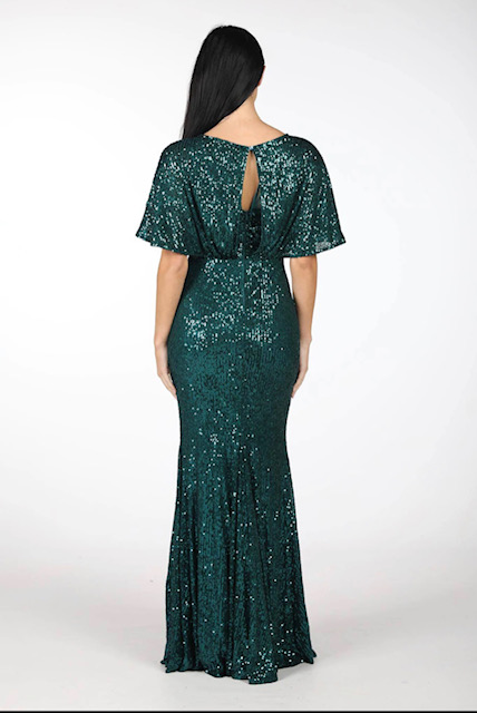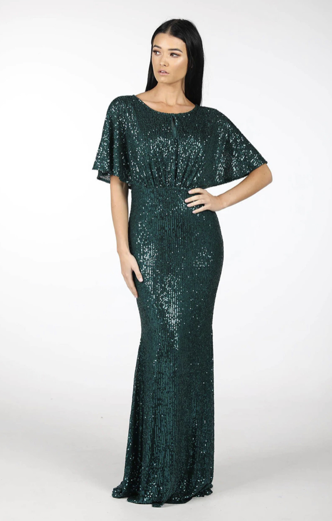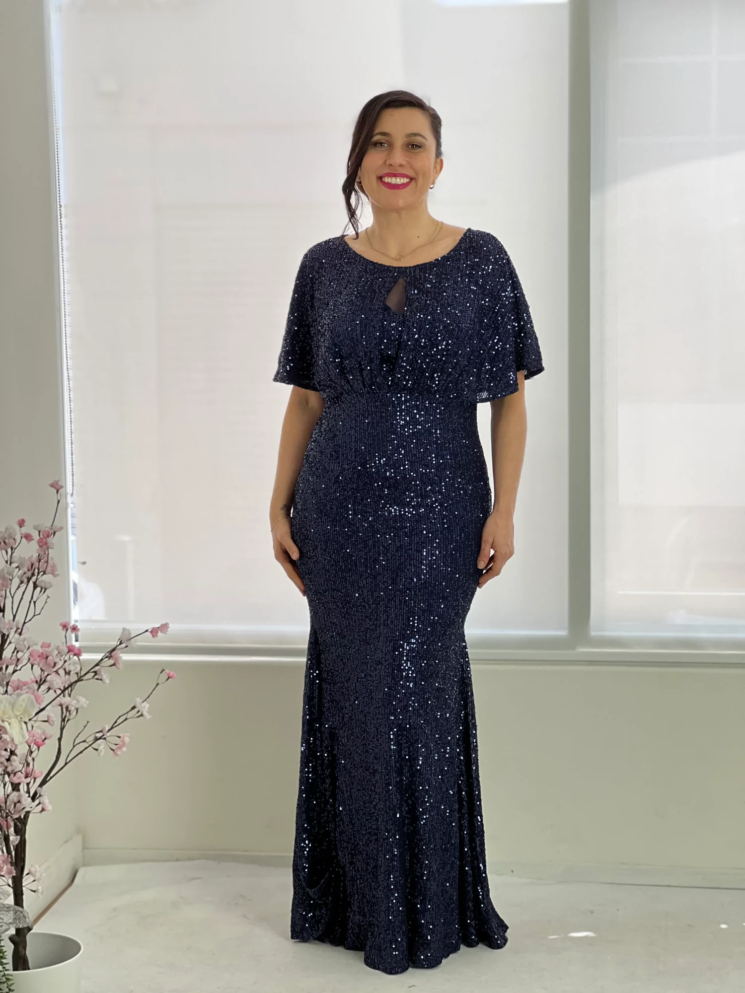 Look and feel like a celebrity at your next formal event in this glamorous and feminine Neptune formal gown. Made in an exquisite sequin embellished fabric with a stretchy inside jersey dress, this gown is designed to comfortably shape your curves. Team with silver or nude heels and clutch to complete this elegant evening look. Available in sizes 8-22. Colours available are Merlot/Black; Silver/Navy Rose gold, Navy and Green