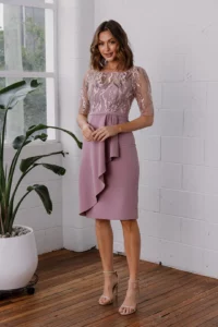 With Kassia it’s all in the details! She’s made from a stunning embroidered lace (embellished for added glamour!) and features transparent sleeves and dramatic pleats for that high fashion look. Perfect for any occasion from mother of the bride to end of year parties