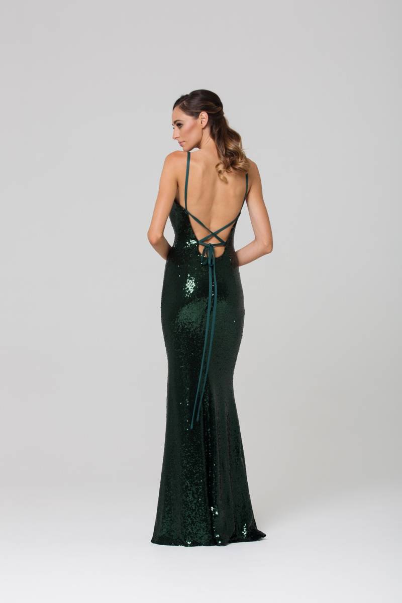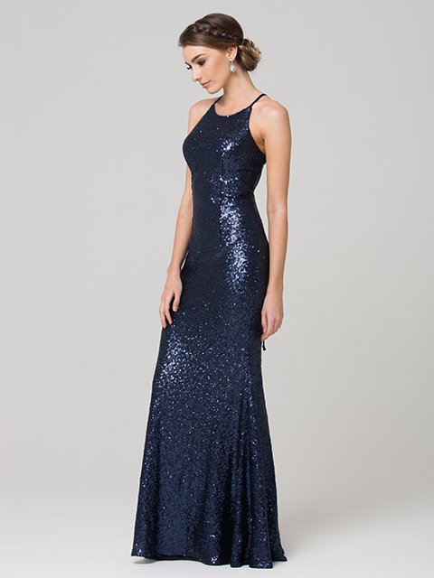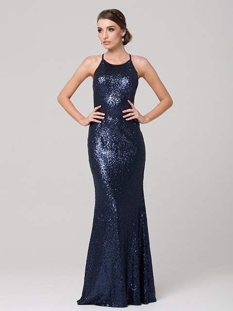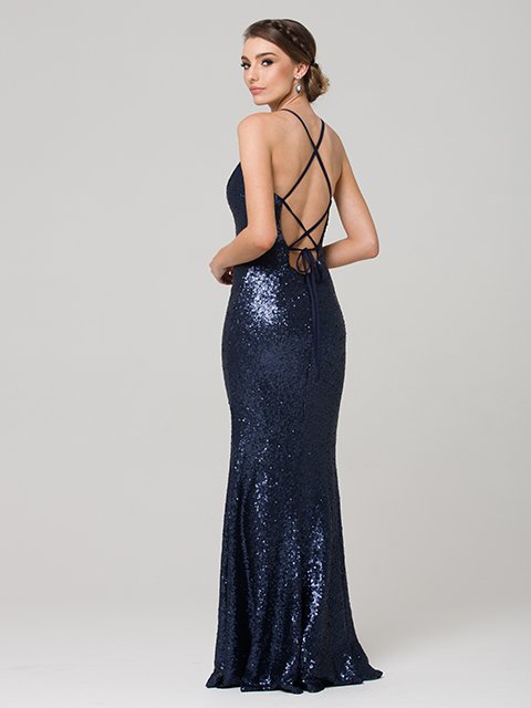 Turn heads in the stunning Sadie Sequin Formal Dress. It has a low cut tie up lace back and a sexy fitted mermaid skirt and you will emanate simple elegance. With a high cut racer neckline and inner bra cups for support this dress is easy to wear and very comfortable with a stretch lining for an easy fit.