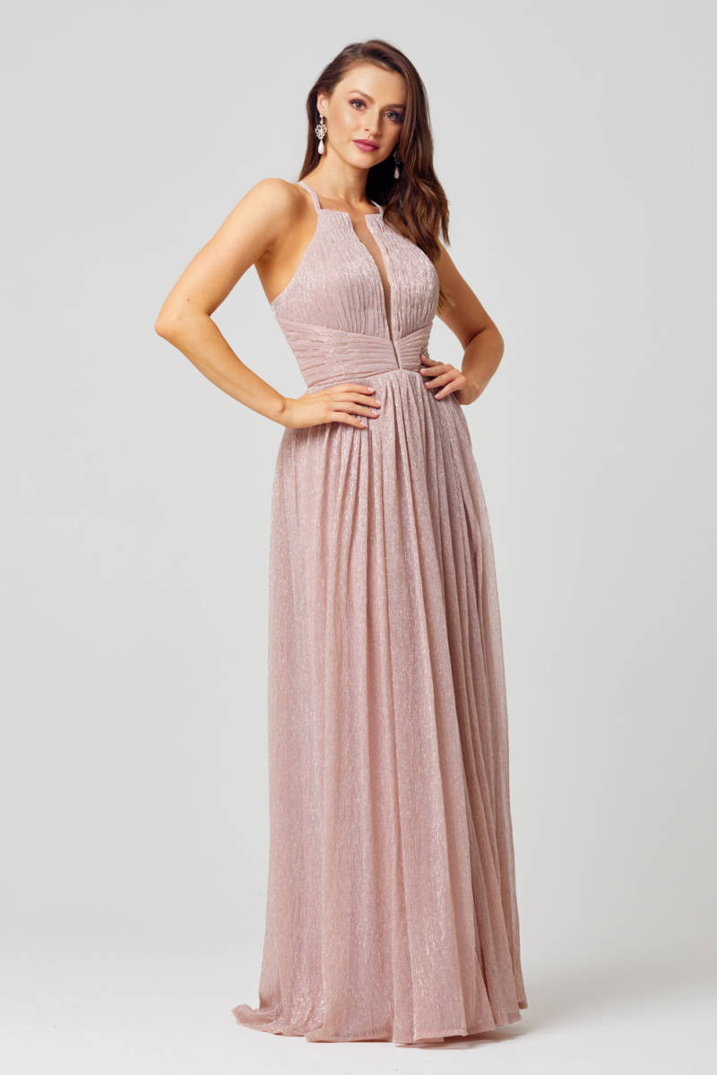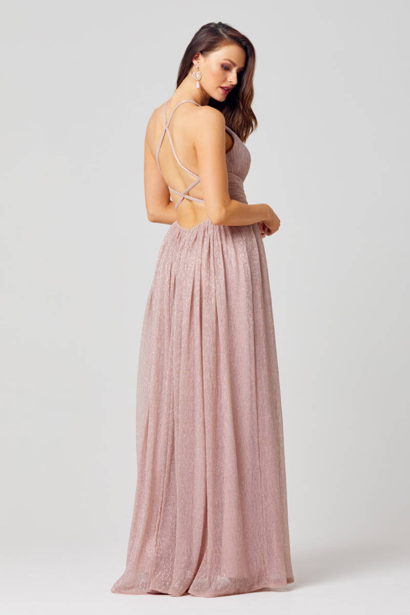The Rey Crossover Back Formal Dress is crafted from a gorgeous glitter crinkle knit fabric, making it glisten beautifully under light. This flattering silhouette is classic for a reason, yet this design has a twist; plunging neckline and a lace up back detail! This lightweight, floor length gown is a great choice for your next formal or evening event.