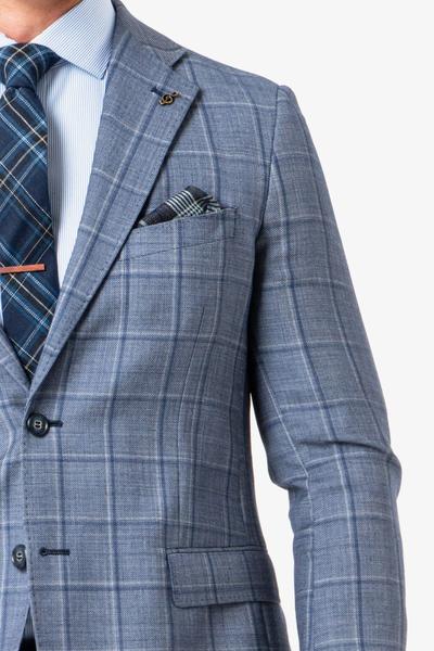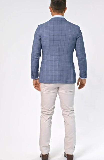 Dress this Jacob sportscoat down with a pair of chinos, an open neck shirt and a cool pocket square and watch their heads turn. A bold check that shows your personality as soon as you walk through the door. This jacket works back with Navy Chinos or Dress pants.