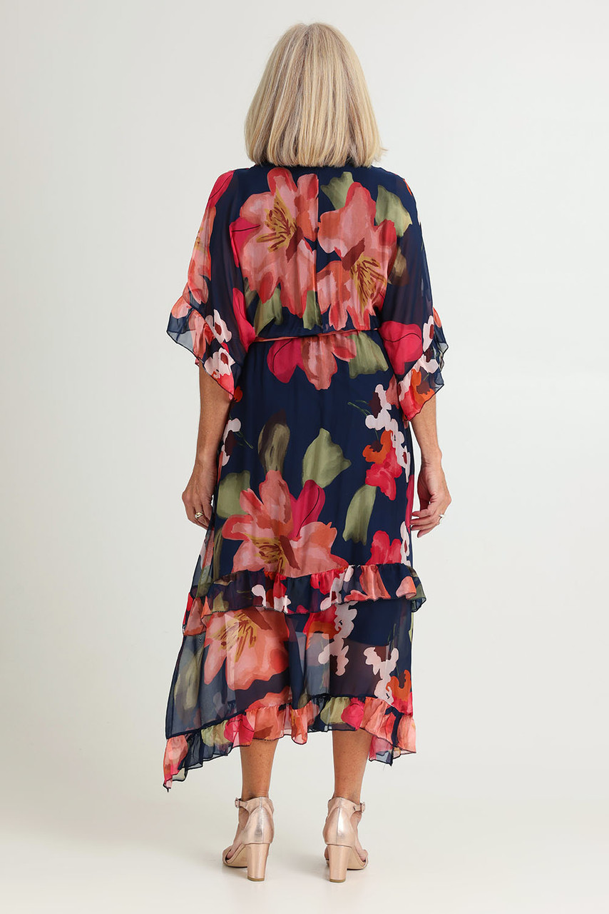 Style LSD25-73-360 Silk Blend Floral Midi Dress – Navy Multi