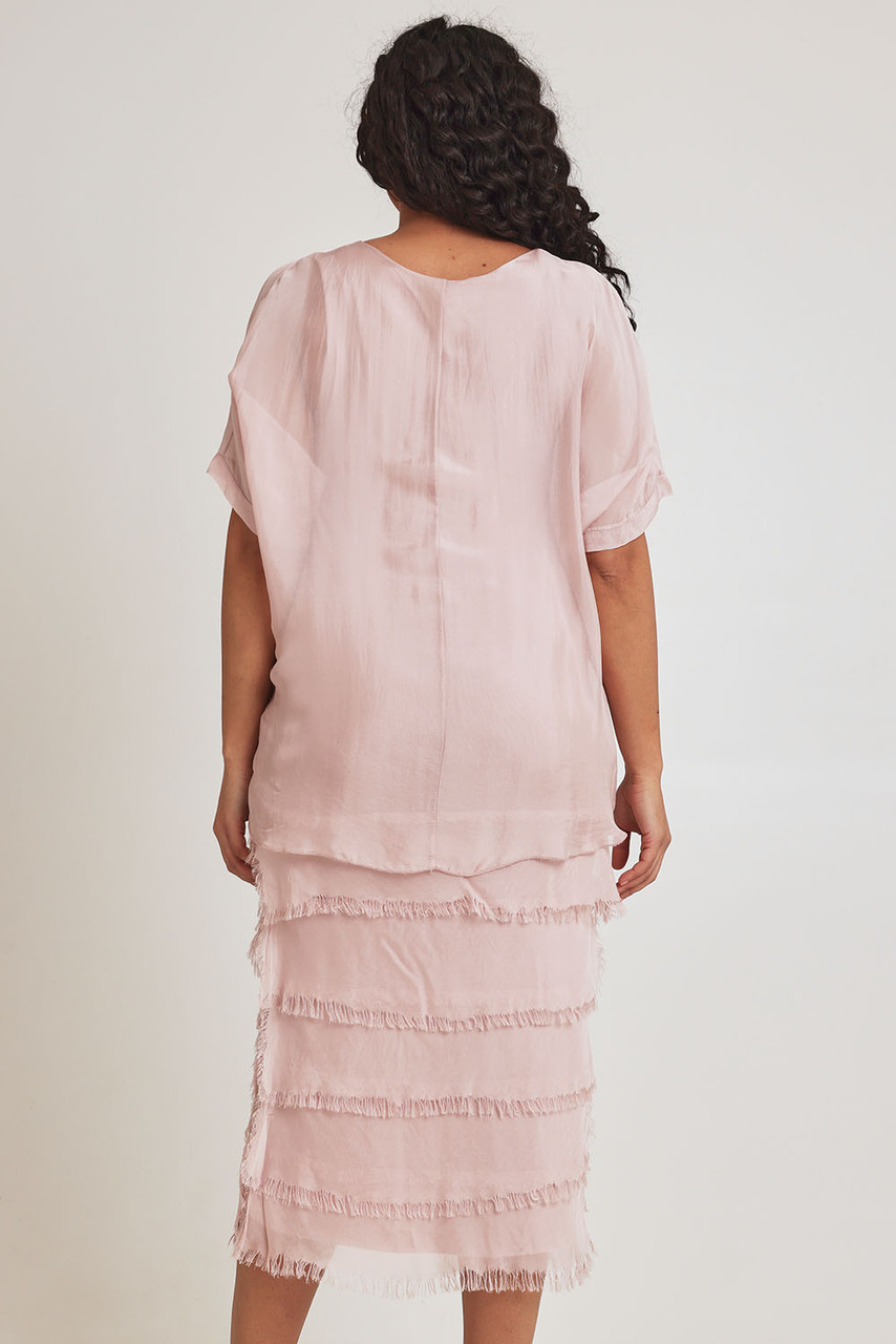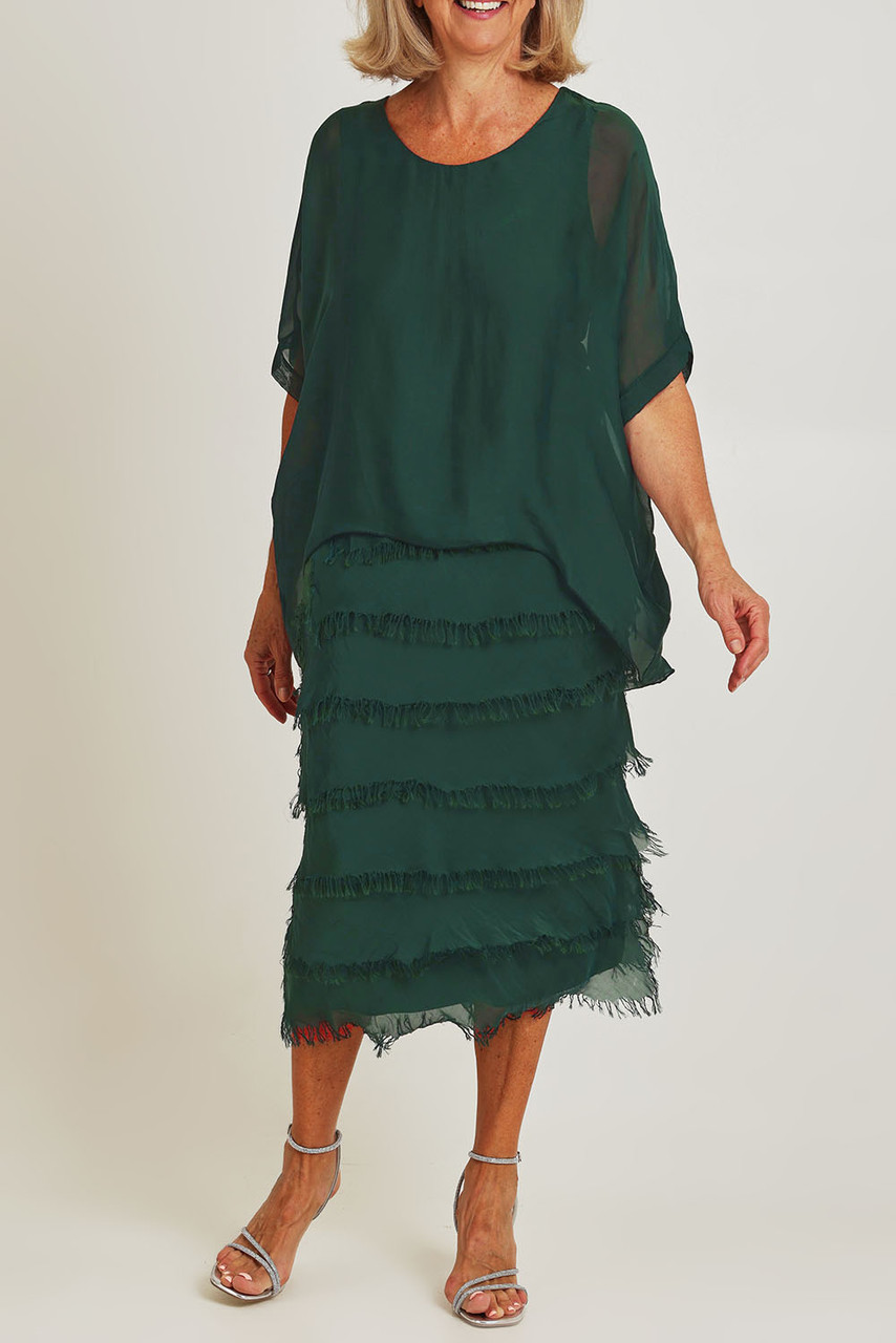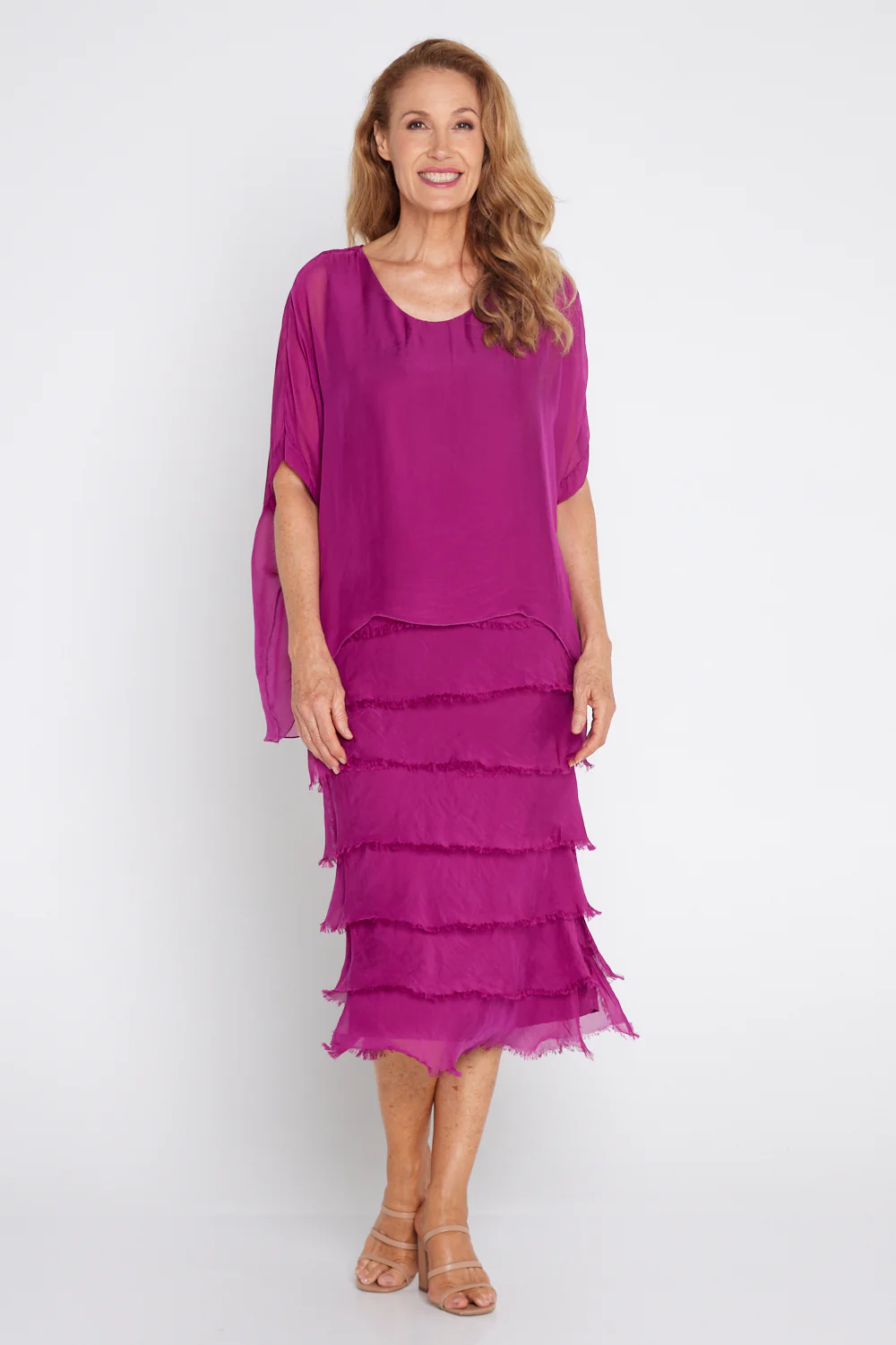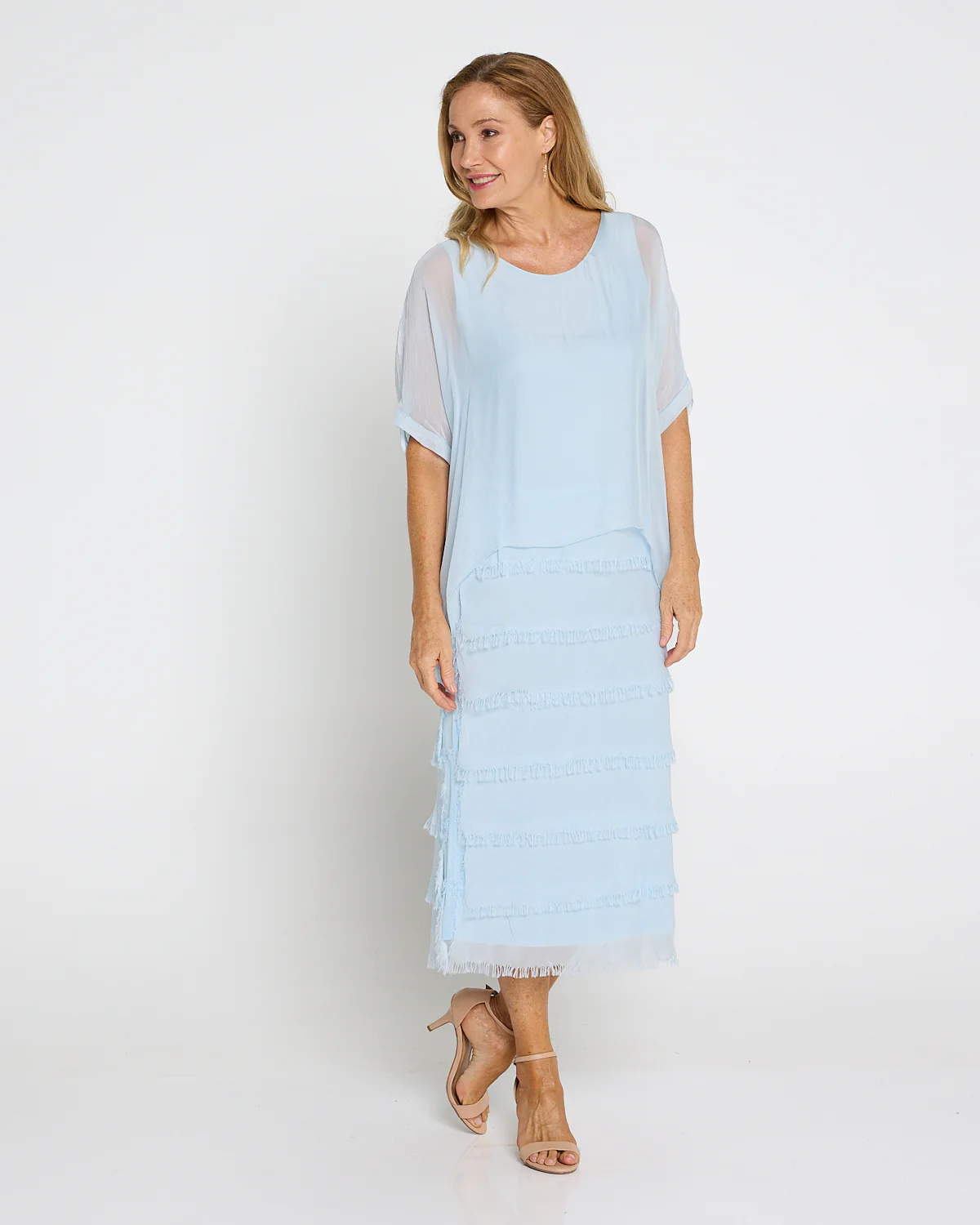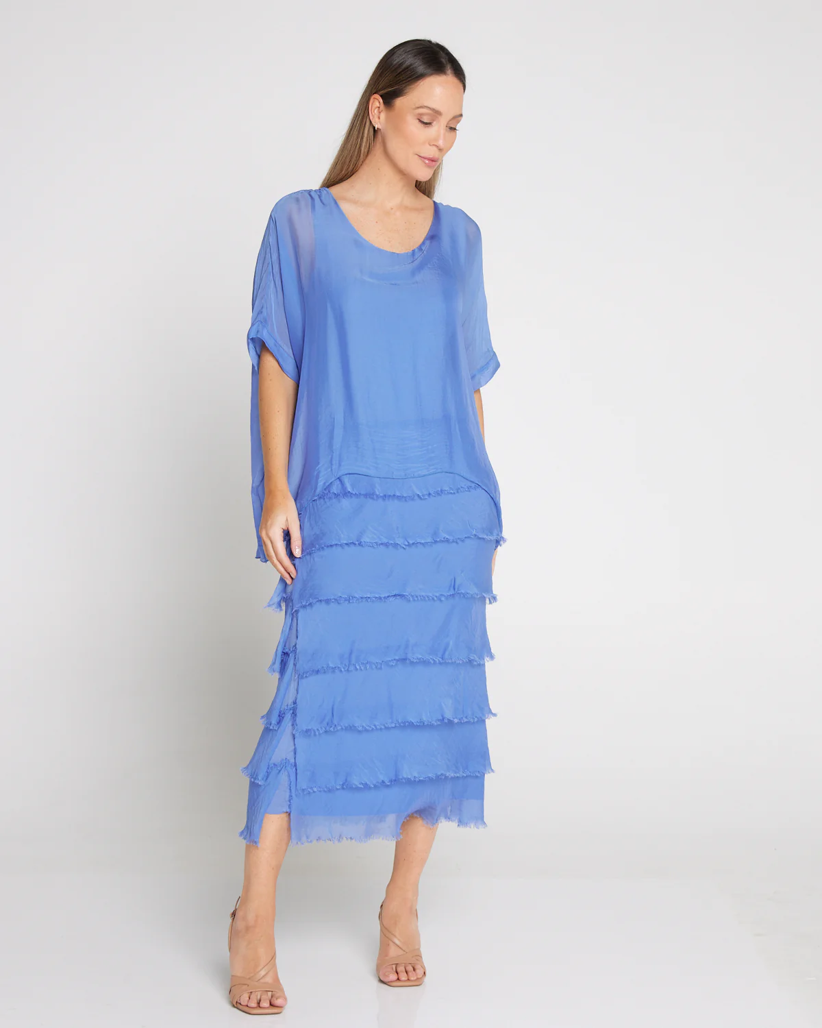 The Silk Blend Multi Layers Dress from La Strada is fabulous for weddings and other formal occasions. Lined in a smooth stretch viscose slip, this dress features a sheer tiered overlay that skims the waist and lengthens the look, catching and dancing softly with every move. Pair with accessories that sparkle and a raise in the heel to complete the look.