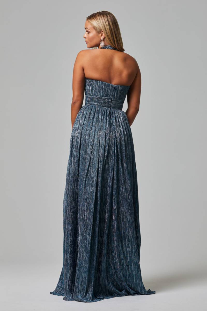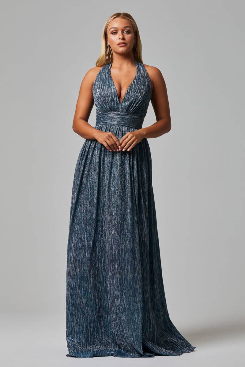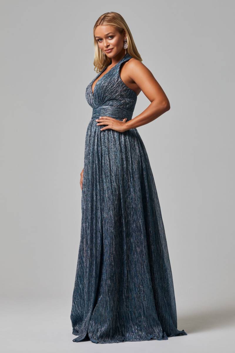 ONLY ONE LEFT in size 14! PO703 Oceana evening gown by award-winning Australian designer Tania Olsen is flattering for a range of shapes and sizes. Feel every bit the Goddess with structured crinkle fabric falling from a strong waistband to a sultry high-split skirt.