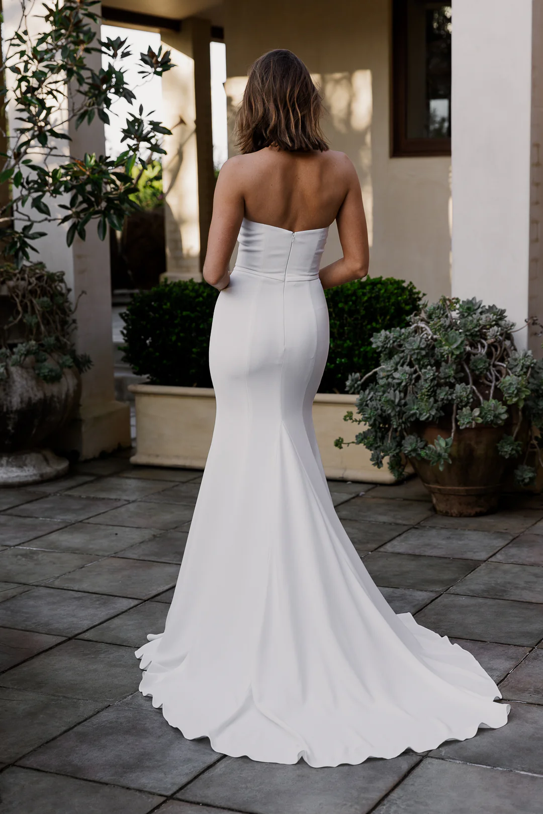 The Monique TC397 Bridal Dress features a sleeveless boned bodice with a sweetheart neckline, mermaid silhouette and a small train. Available for order in sizes 4-30.