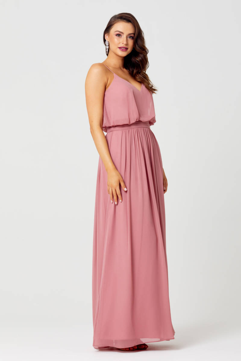 The Niamh V-Neck Bridesmaid or formal Dress is a simple but amazing option for many functions. This floaty, lightweight style features a v-neckline, bloused bodice and spaghetti straps that sit over the shoulders to form a v-back. From the belted waistband falls a gathered style floor length skirt which is light in weight and moves beautifully. This can be ordered in thirteen colour variations.