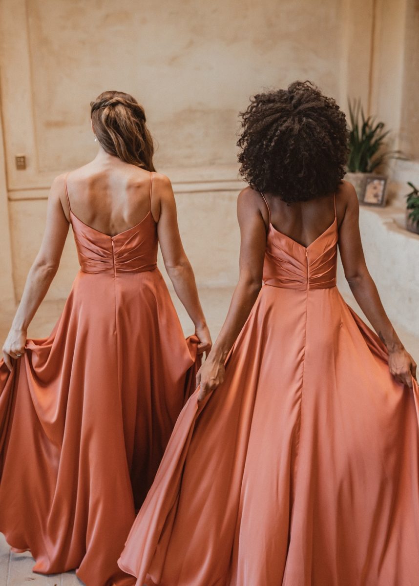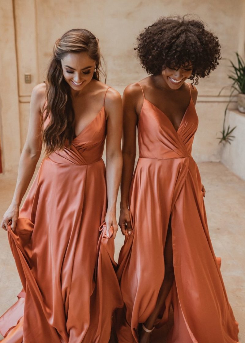 The Suva Crossover satin formal or bridesmaids dress TO875 by Tania Olsen Designs is a simple yet modern design that will take your breath away. The Suva features a gathered bodice with plunging v neckline, spaghetti straps, and a subtle V back. From the waistline falls a floor length skirt with a leg split that starts in the middle of the thigh and falls to a fit and flare silhouette. This design is constructed from a lightweight satin that sits beautifully on the body, and is a great choice for spring and summer affairs. This bridesmaid dress is available in 6 shades, in sizes AU 4-30.