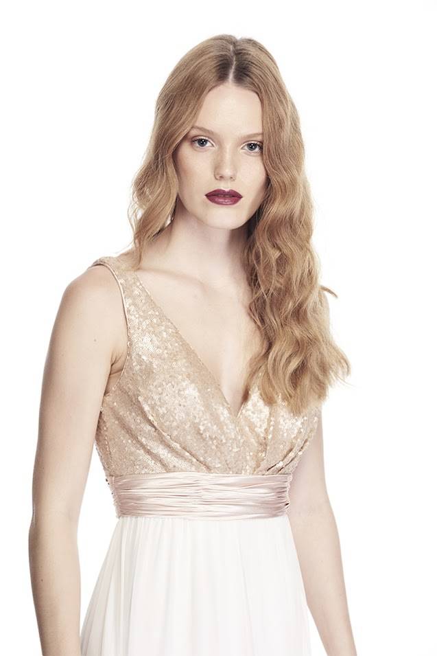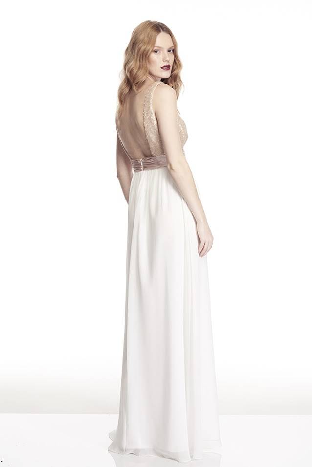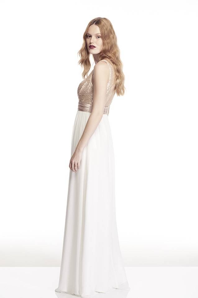 This lovely Tinaholy dress has a White chiffon skirt and gold sequin bodice.