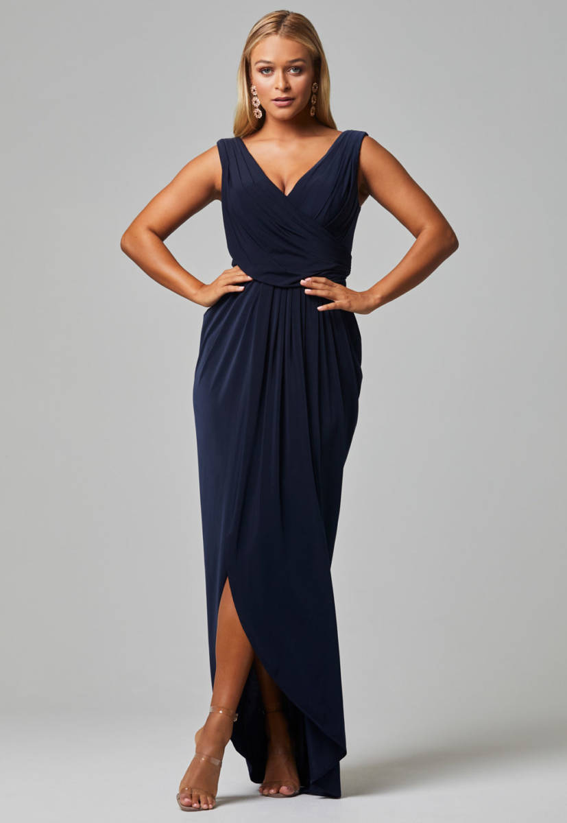 Turn heads in this captivating Tania Olsen Designs Kalani dress. On the front, the dress features a deep V-shape neckline to compliment the decolletage, and a subtle yet sultry leg split.
