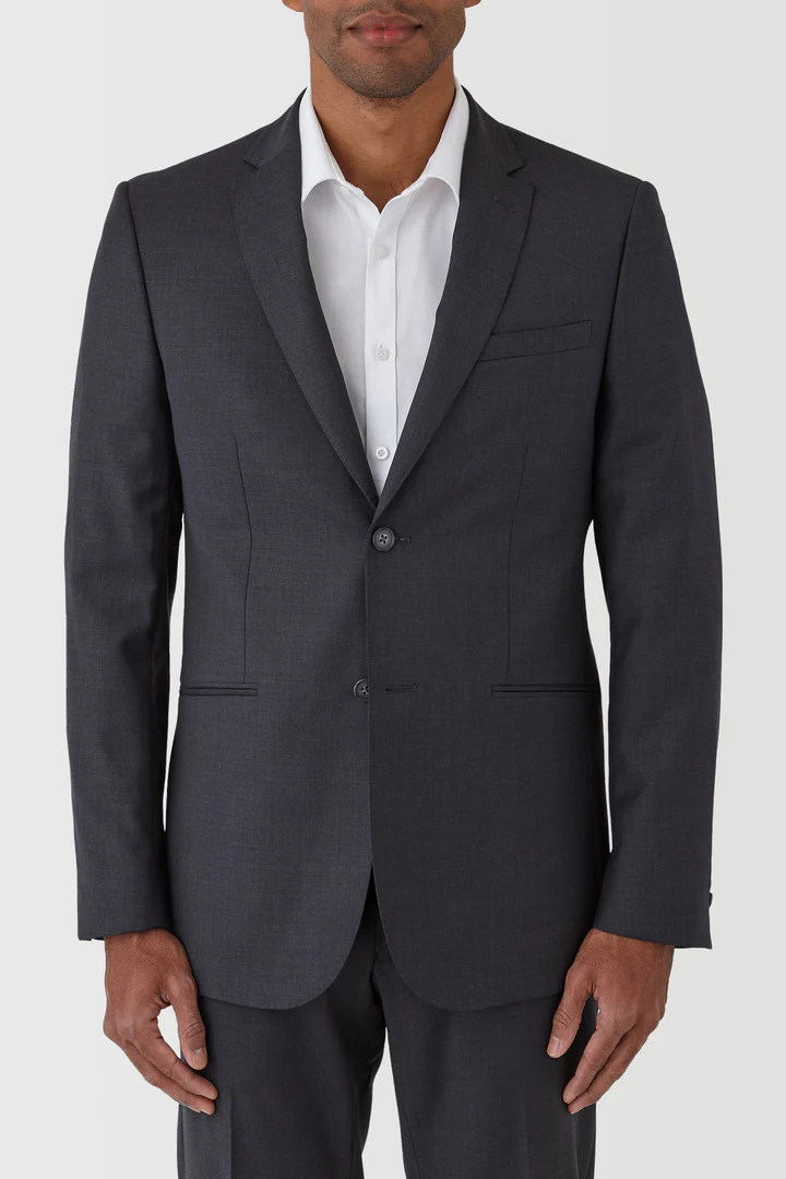 Look the part in this charcoal grey textured slim fit Troy suit jacket. Perfect for work, or style as a three piece for your next event. Pair with the matching Blake trouser and Tom vest. Designed in Australia.