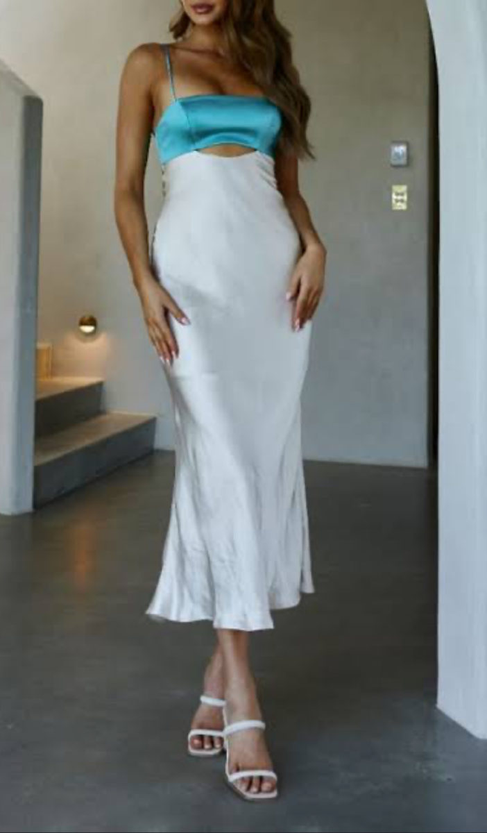 this gorgeous two tone dress is cut on the bias and made with a very good quality satin.