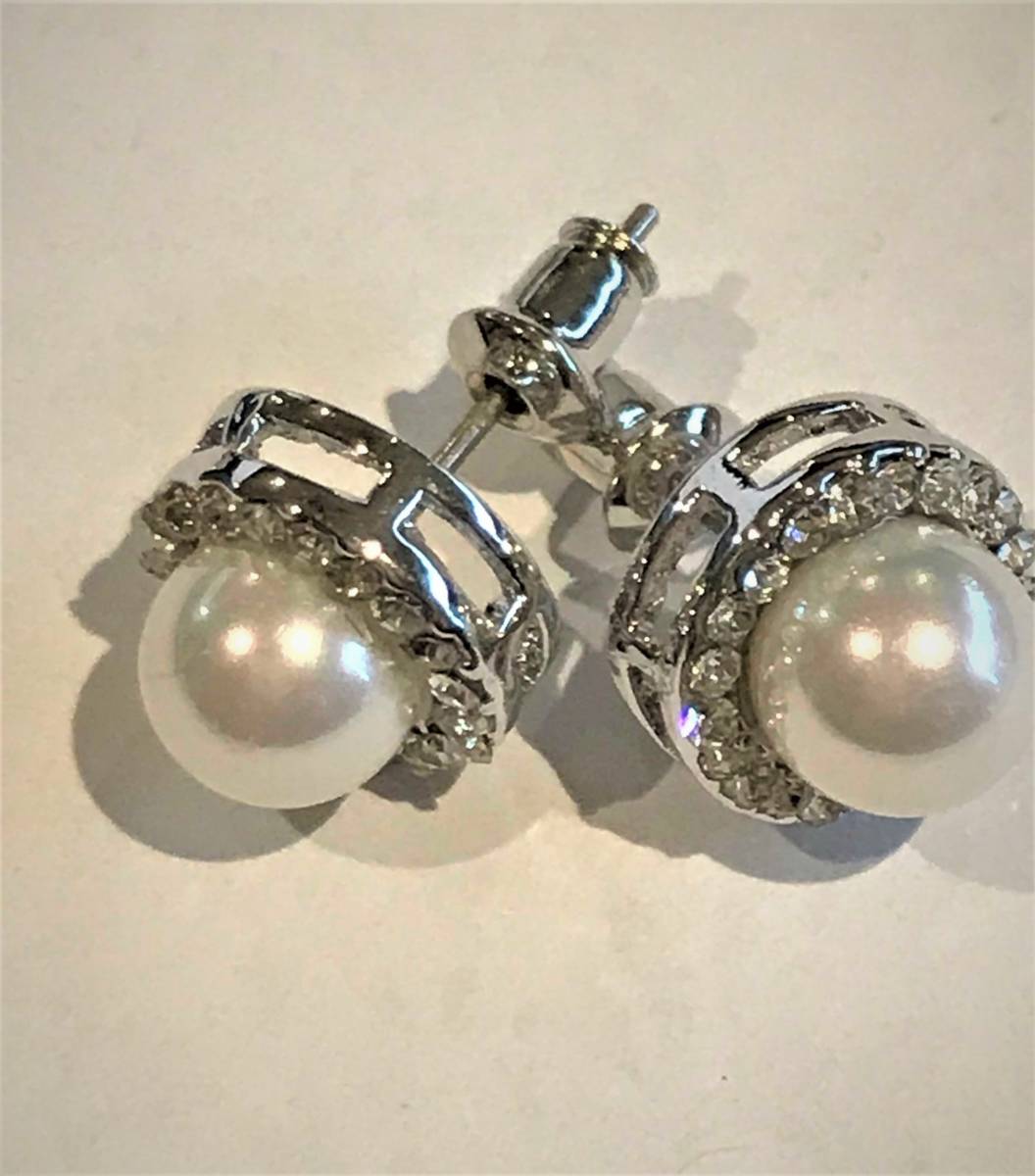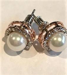 Pearl, diamante and silver earrings $19 Pearl, diamante and Rose gold earrings $19