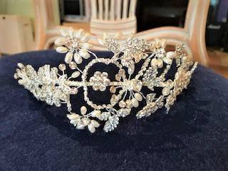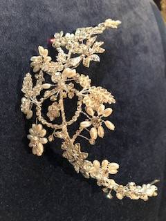 YLACS316 Flexible hair piece silver with pearls and diamantes $90